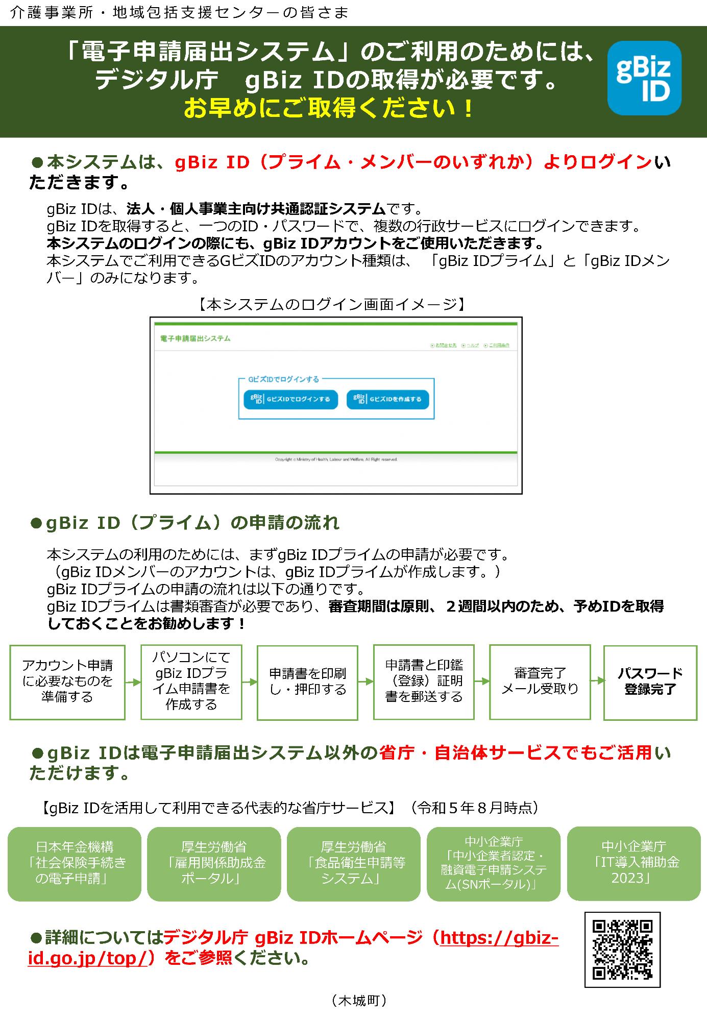 システムの利用には、デジタル庁が運用する法人・個人事業主向け共通認証システム「GビズID」のアカウントの取得が必要です。IDを持っていない法人はアカウントを作成してください。