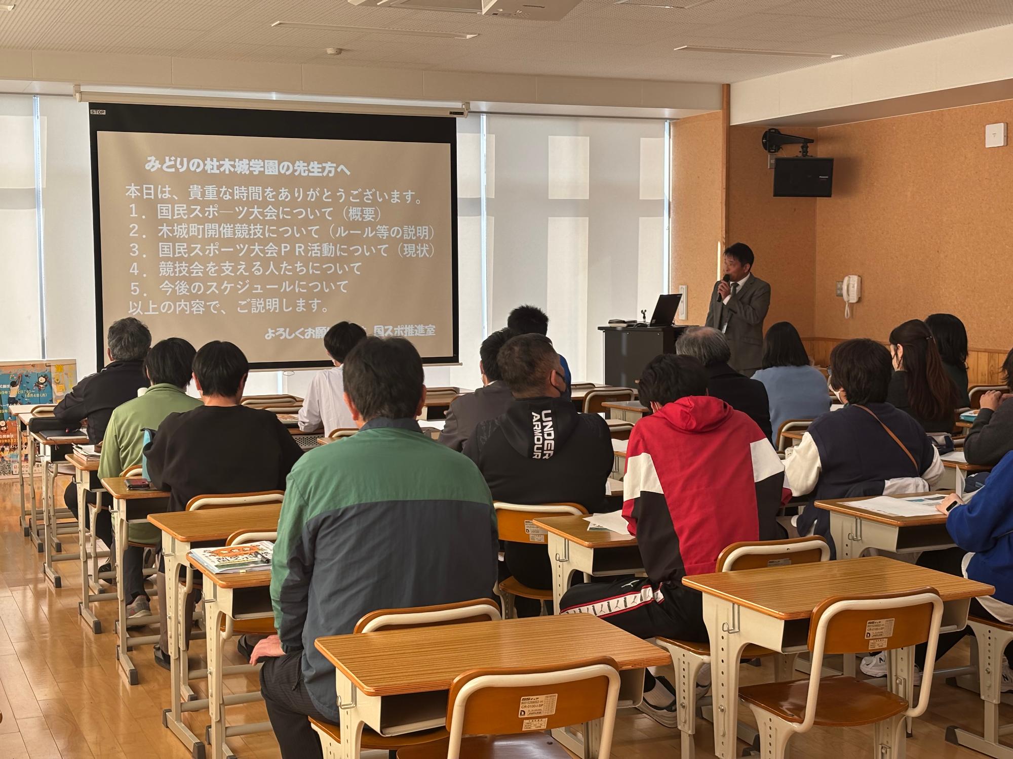 令和9年度に控える国スポ大会に向け、開催競技の説明や現在行っているPR活動についての説明を行いました。